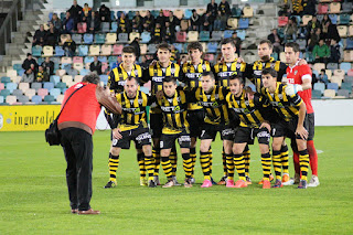• Alineación del Barakaldo CF.Alejandro, Quintanilla, Pomares, Elguezábal, Etxebarria, Albísua, Armiche, Cerrajería, David Martínez, Alaín e Izquier